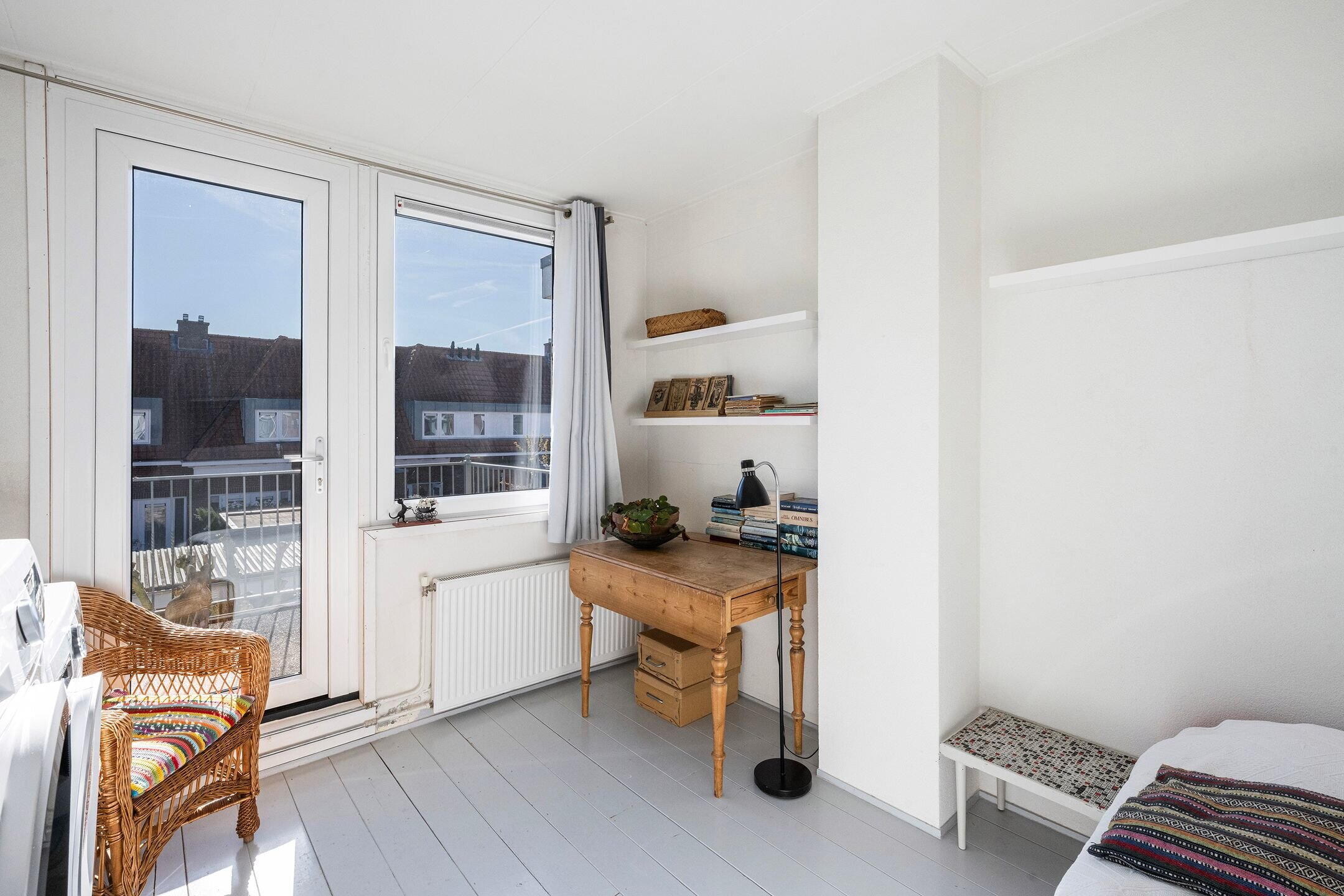 In één van de meest geliefde straten van Assendorp staat deze charmante en karakteristieke tussenwoning met authentieke gevel en verrassend veel ruimte. De woning is uitgebouwd aan de achterzijde en beschikt over een sfeervolle woonkamer met parketvloer, een ruime opbergkelder, twee slaapkamers en een dakterras aan de achterzijde. Authentieke details zoals glas-in-loodramen versterken het karakter, terwijl het buitenschilderwerk zeer recent is uitgevoerd en de woning een verzorgde uitstraling heeft.